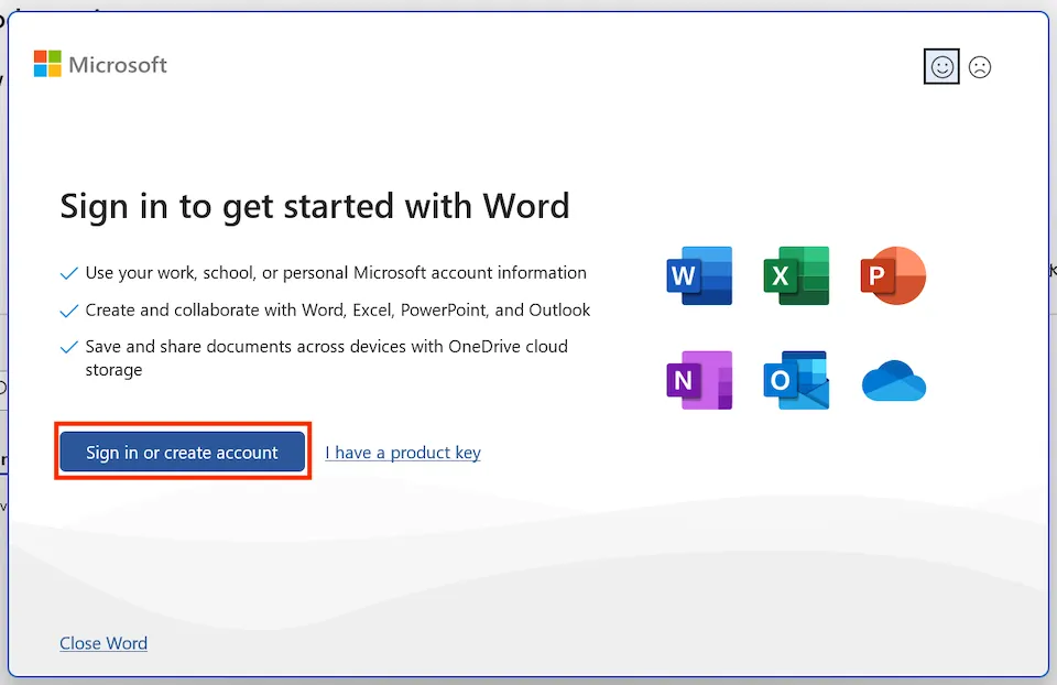 - Please select and launch one of the installed Office apps, such as Word, Excel, or PowerPoint. The following explains using Word as an example.