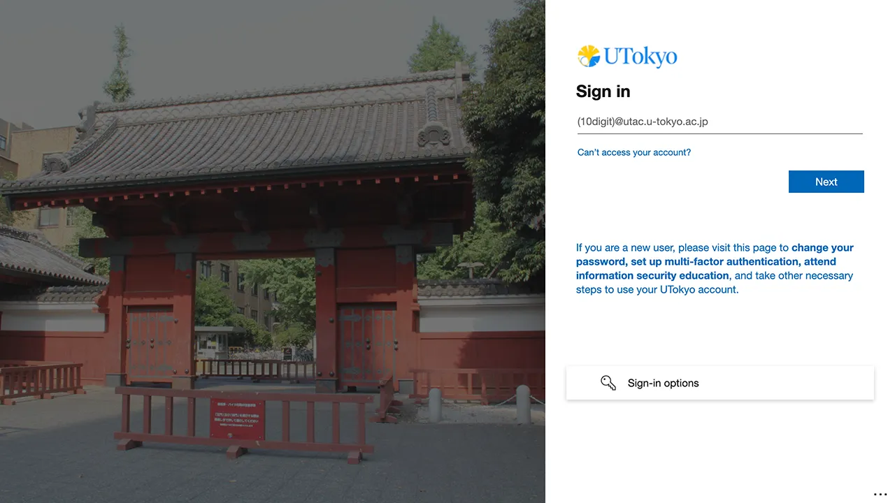 @utac.u-tokyo.ac.jp) and the temporary password.If the sign-in screen does not appear