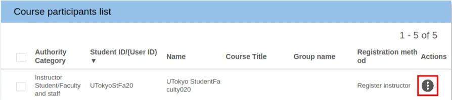 3. Click the “” icon in the “Action” column at the far right of the “Course participants list”.