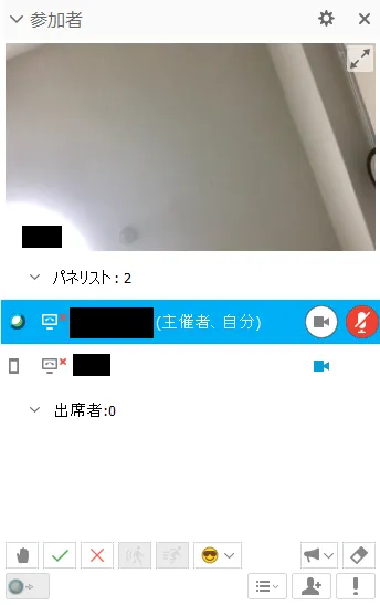 • On the participant panel, you can see the list of participants. Hosts and presenters can mute or give the authorizations to attendees on right click.