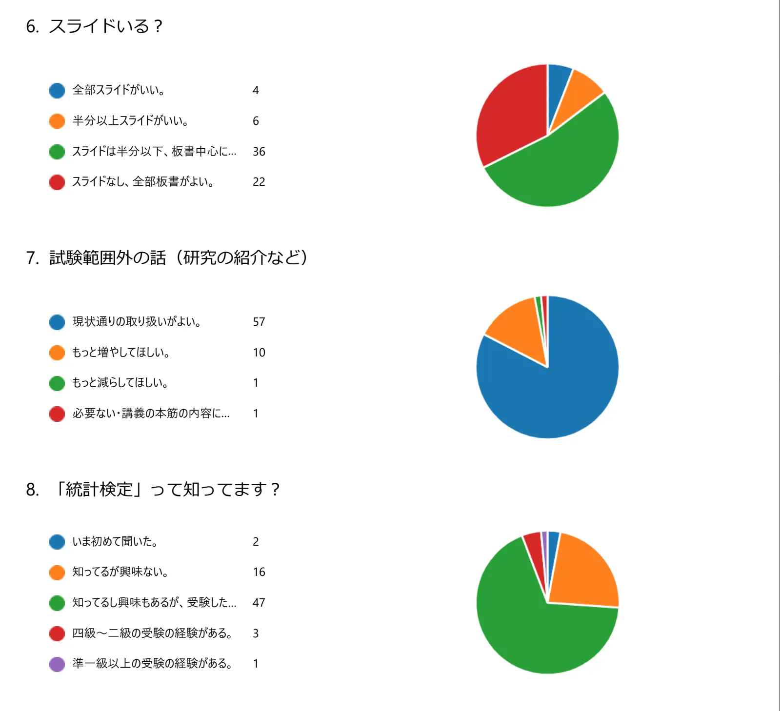 授業で実施したアンケート(後述)によれば、スライド方式の授業を望む学生も一定数はいましたが、少数でした。