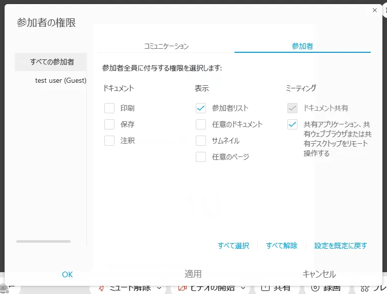 • 「参加者」メニューの「権限の割り当て」の中で,各参加者の権限を細かめに設定することができます.