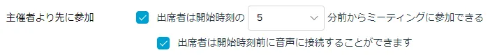 • 会議のスケジュール時に「スケジューリングオプション」の中の「主催者より先に参加」を設定しておくと,主催者が会議を開始していなくても参加者は会議室に入ることができます.ここで参加者が「主催者の役割を取り戻す」をすると,主催者になって会議を進めることができるようになります.
