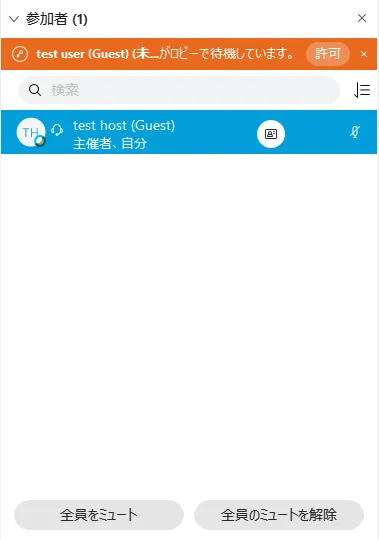 • ロビーで参加者が待っていると,参加者一覧の上に表示されるので,確認して参加を許可することができます.