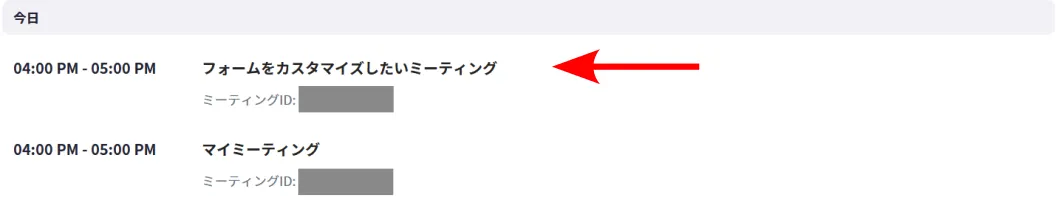 自分のスケジュールしたミーティングが,リストとして表示されます.フォームの項目をカスタマイズしたいミーティングの名前を押してください.