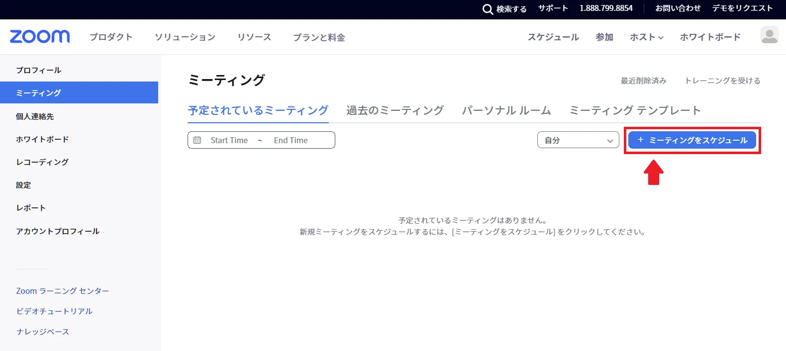 新しくミーティングをスケジュールする場合の手順